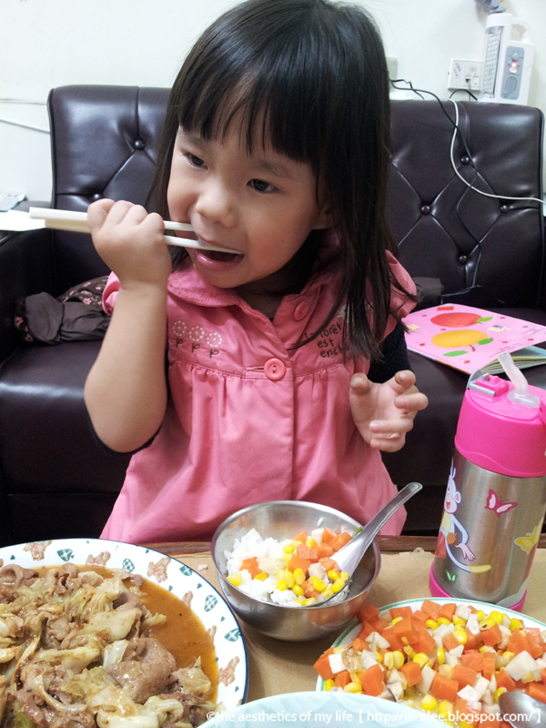 冰箱滿滿的菜逼得我每天至少作一餐,越做越有興趣,興致火來自於mimi的吃光光鼓勵,