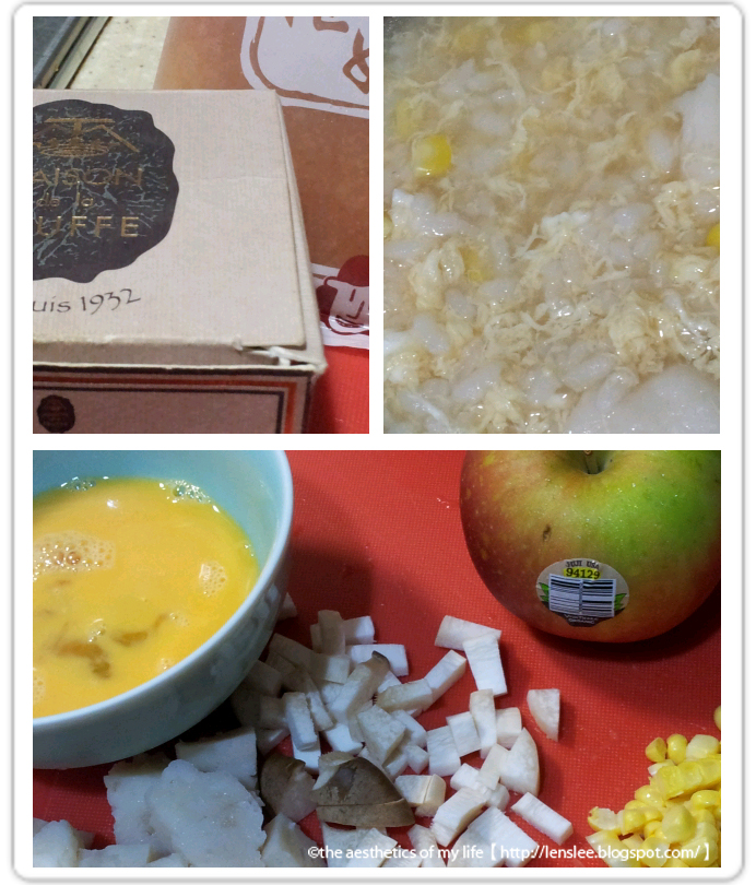 第二餐:營養什錦粥,加了滴雞精及松露鹽,增添了豪華美味,mimi秒殺吃光!